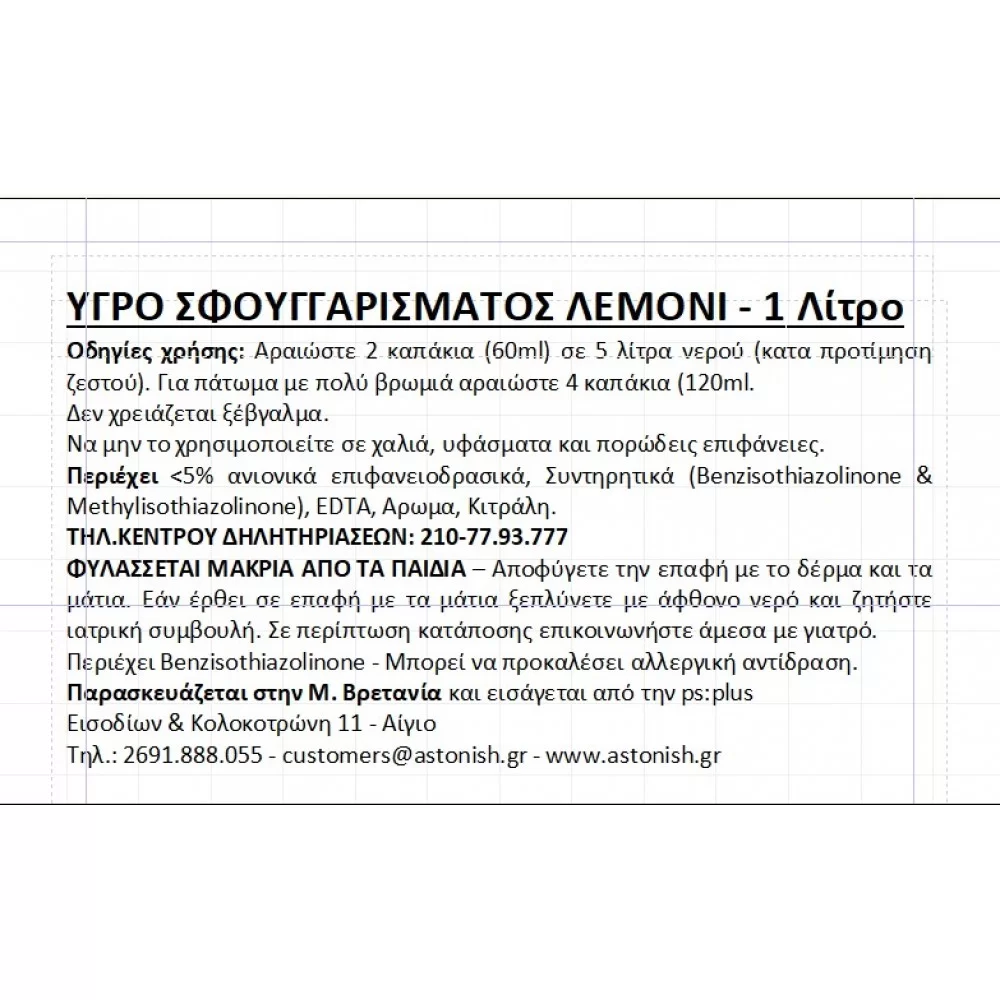 Astonish Specialist Υγρό Σφουγγαρίσματος Λεμόνι 1 Λίτρο